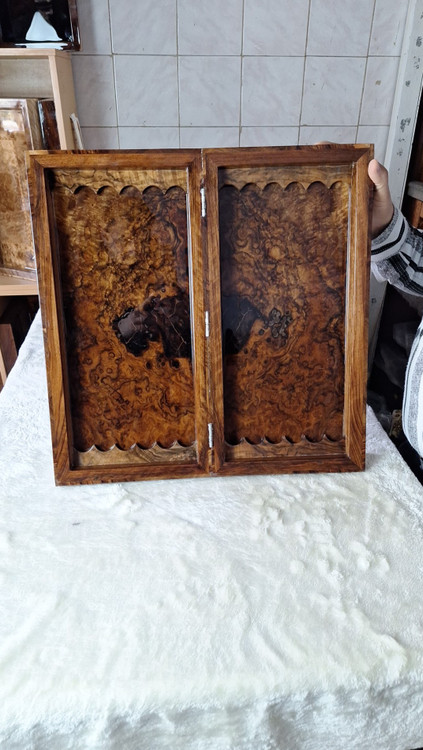 گره و جوش درخت گردوی منطقه کردستان بیش از ۴۰۰سال عمر چوب بوده و ۳تا ۵ سال به روش سنتی چوب خشک شده [همراه متعلقات کامل مهره ی تخته نرد ۲ جفت تاس مالزی و کامپوزیتی و کاور پارچه ای] روش لولا ۳ تا لولای مخفی استفاده شده و رنگ پولیستر ۳ پوششه (شماره 📞 ۰۹۱۸۸۷۷۷۰۴۴ جهت اطلاعات بیشتر)