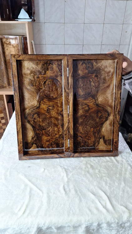 تنه ی درخت گردوی منطقه کردستان بیش از صدسال عمر چوب بوده و ۳تا ۵ سال به روش سنتی چوب خشک شده [همراه متعلقات کامل مهره ی تخته نرد ۲ جفت تاس مالزی و کامپوزیتی و کیف سامسونت] روش لولا ۳ تا لولای مخفی استفاده شده و رنگ پولیستر ۳ پوششه (شماره 📞 ۰۹۱۸۸۷۷۷۰۴۴ جهت اطلاعات بیشتر)